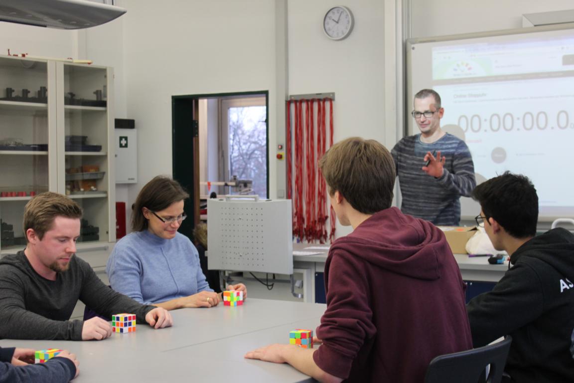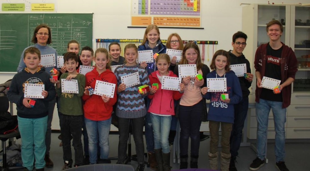 Jeder Erwachsene kennt ihn noch aus seiner Kindheit: Den Zauberwürfel, den jeder hatte aber keiner lösen konnte. Im Jahr 2018 sieht das ganz anders aus: 15 Schülerinnen und Schüler traten beim diesjährigen Mathe-Weihnachtswettbewerb an, der ganz im Zeichen des Speedcubings stand. Hierbei sollte der Zauberwürfel nicht einfach nur gelöst werden – nein, dies sollte auch noch möglichst schnell geschehen!