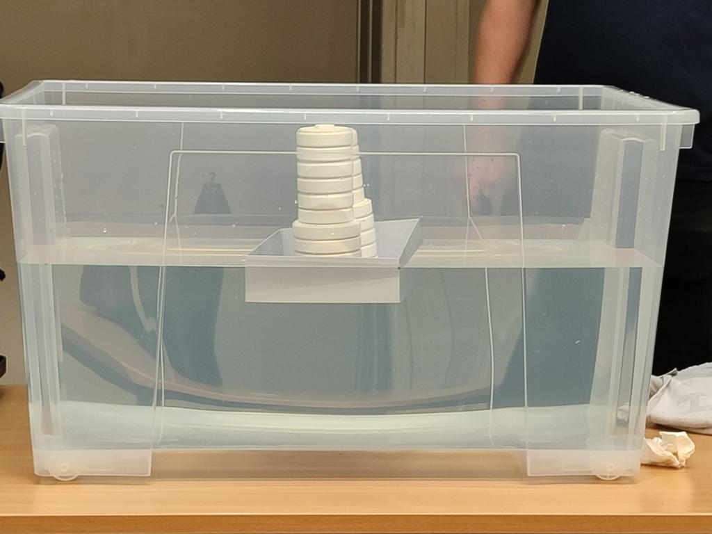 In der leichten Kategorie gelang es Bjarne (8a), den ersten Preis zu gewinnen. Seine Aufgabe bestand darin, einen Schwimmkörper zu entwickeln und mit dem 3D-Drucker herzustellen, der möglichst viel Gewicht tragen kann, ohne zu kentern oder zu sinken. Dabei musste das Gewicht in mehreren Etappen aufgeladen und an verschiedenen Punkten platziert werden. Es gewann das Team, dessen Schwimmkörper am meisten Gewicht sicher tragen konnte.