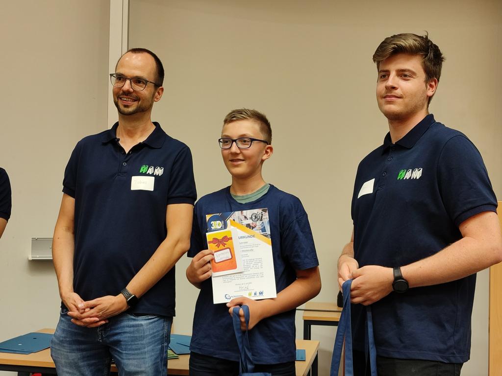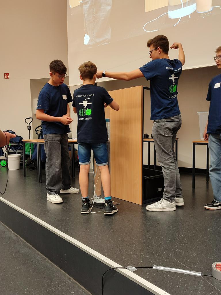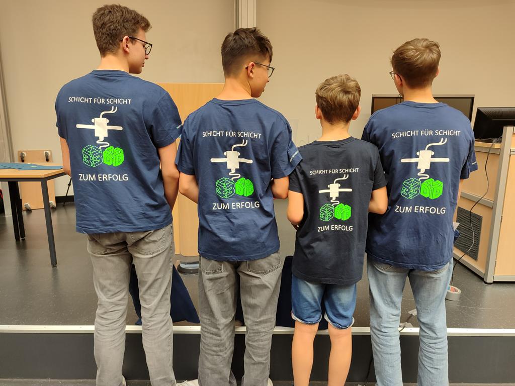 Ein herzliches Dankeschön geht an Frau Kunkel, die die Teams mit eigens gestalteten Wettbewerbs-T-Shirts ausgestattet hat. Die Vorbereitung auf den Wettbewerb fand in der 3D-Druck-AG unter der Leitung von Frau Will statt, die die Gruppe auch am Wettbewerbstag engagiert begleitete.
