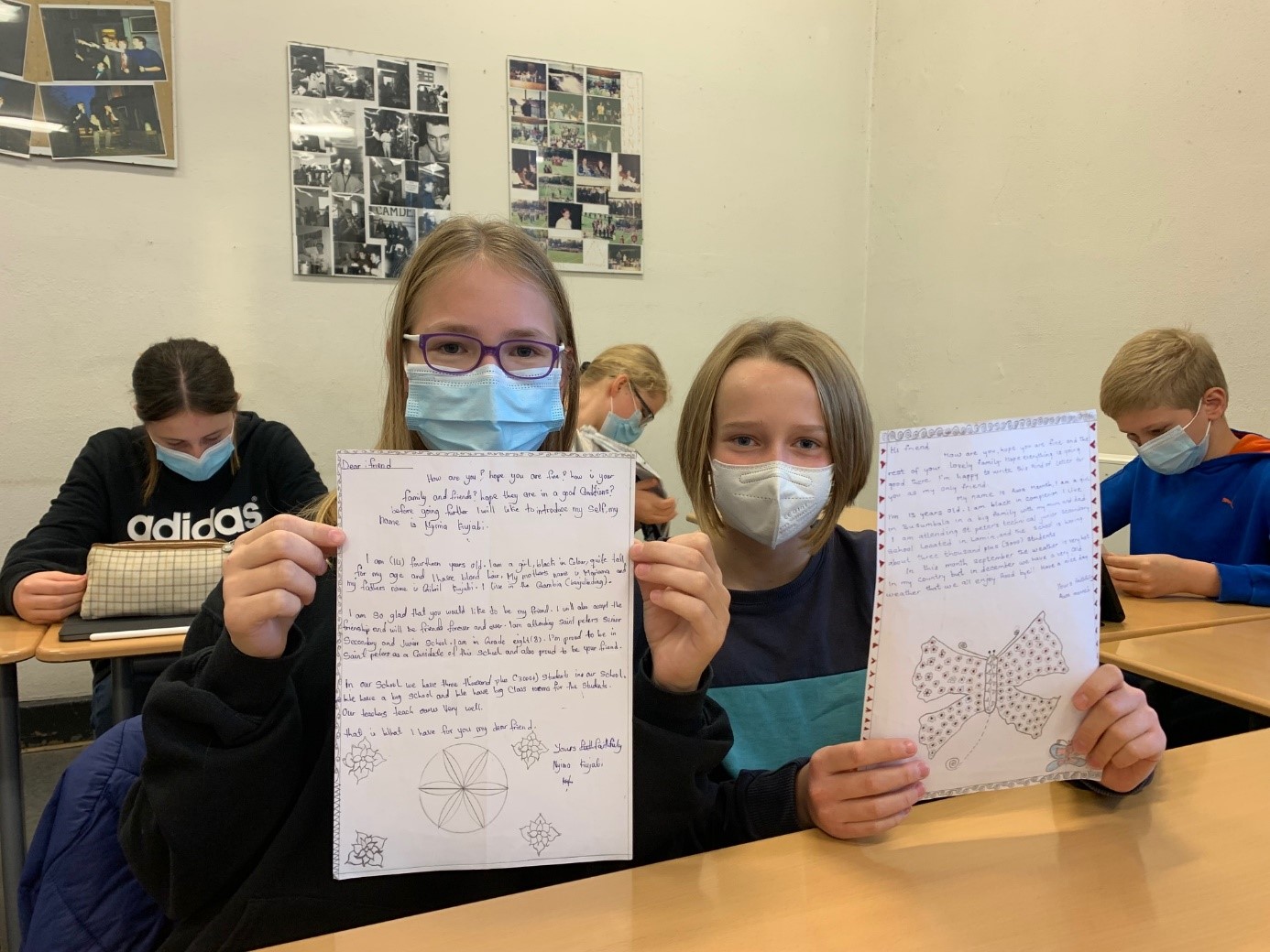 Nach einer längeren Pause auch wegen der Corona-Situation konnte am Gymnasium Waldstraße am 29.10.2021 wieder das Gambia-Projekt starten. Unter der Leitung des allgemeinnützigen Hattinger Vereins „Together in the Gambia“ haben die Schüler und Schülerinnen der Klasse 7c und 7d handgeschriebene Briefe von Schülern und Schülerinnen aus Lamin, Gambia entgegengenommen. Vorher wurden sie von den Initiatorinnen Fr. Barbara Fröber und Uta Wegener-Linse, die gambisches Geld und Handwerkserzeugnisse mitgebracht hatten, über wichtige geographische und soziale Aspekte des Lebens in Gambia informiert.