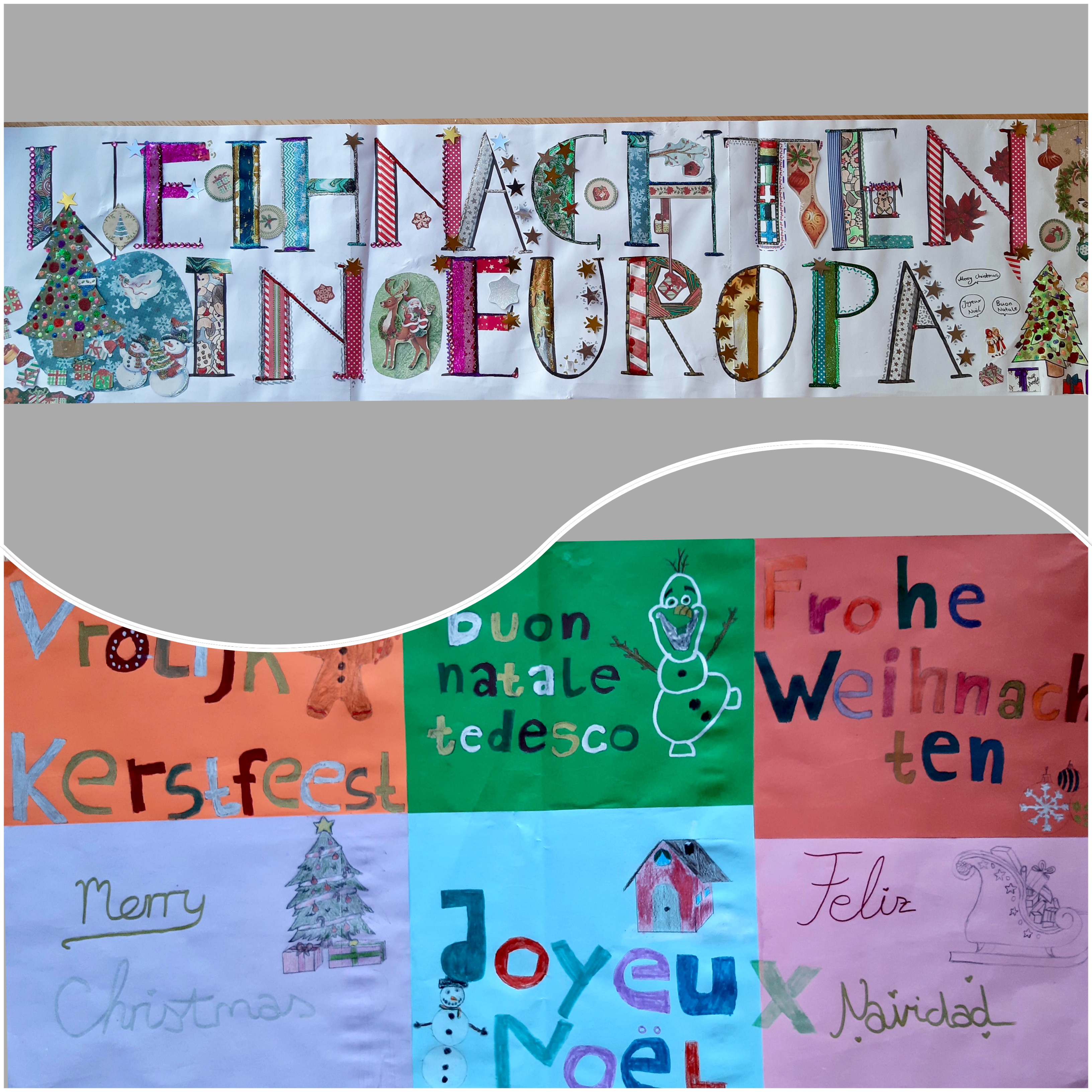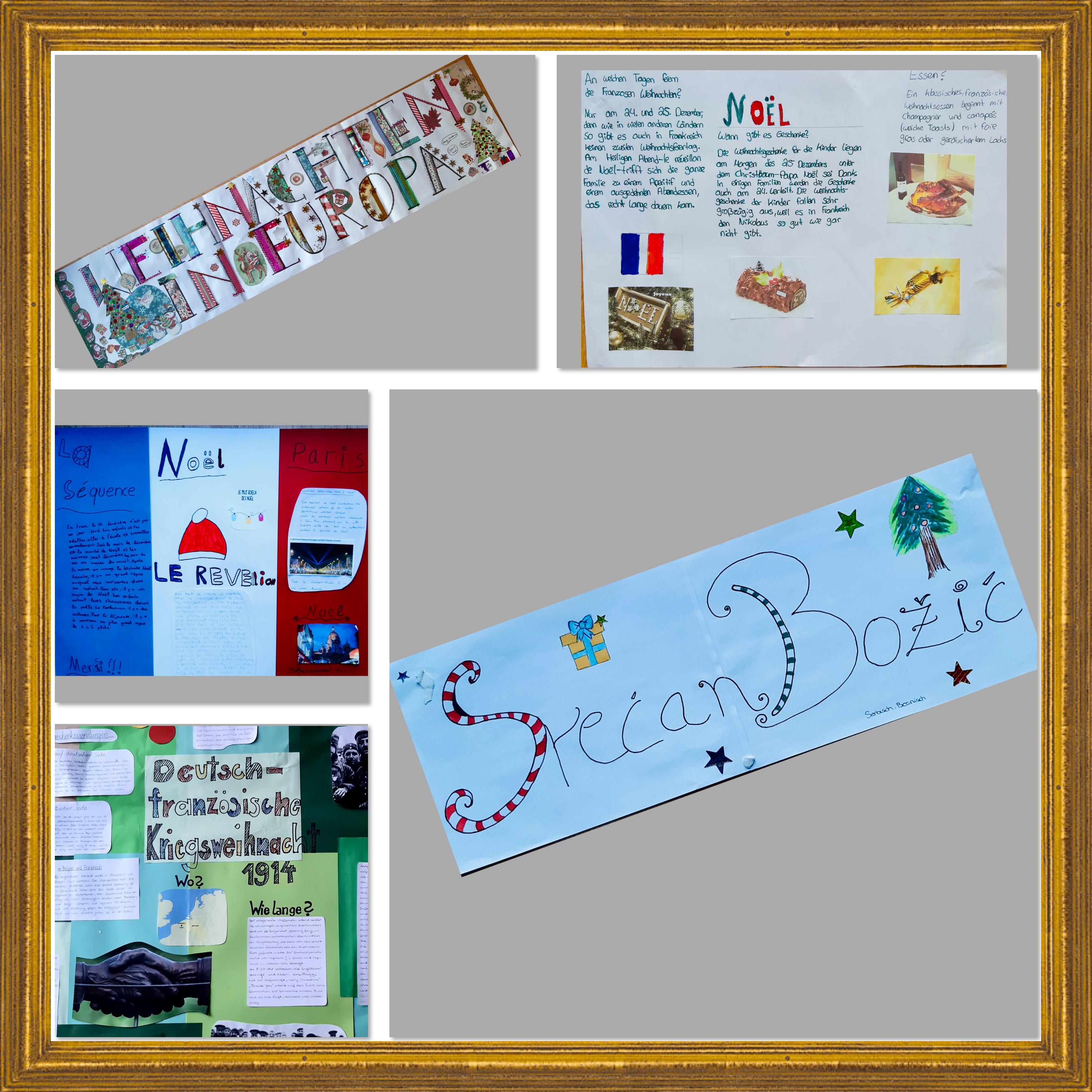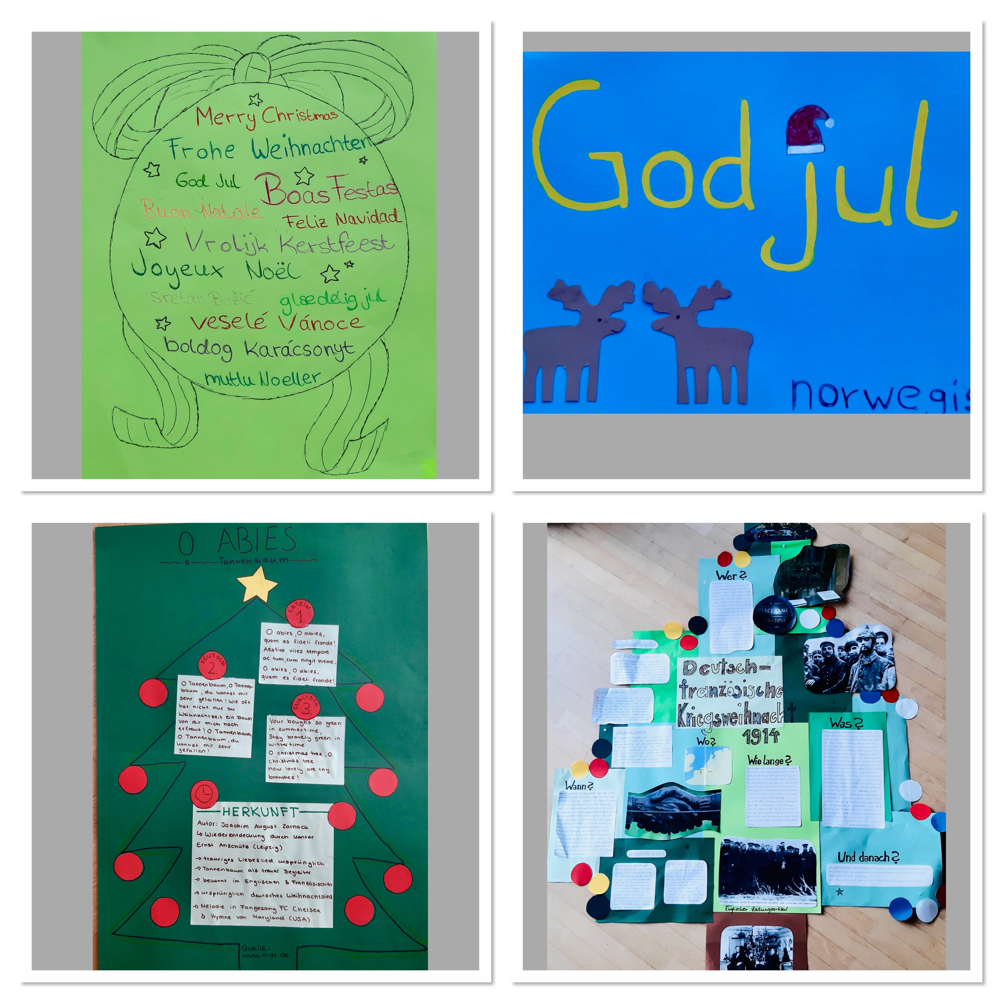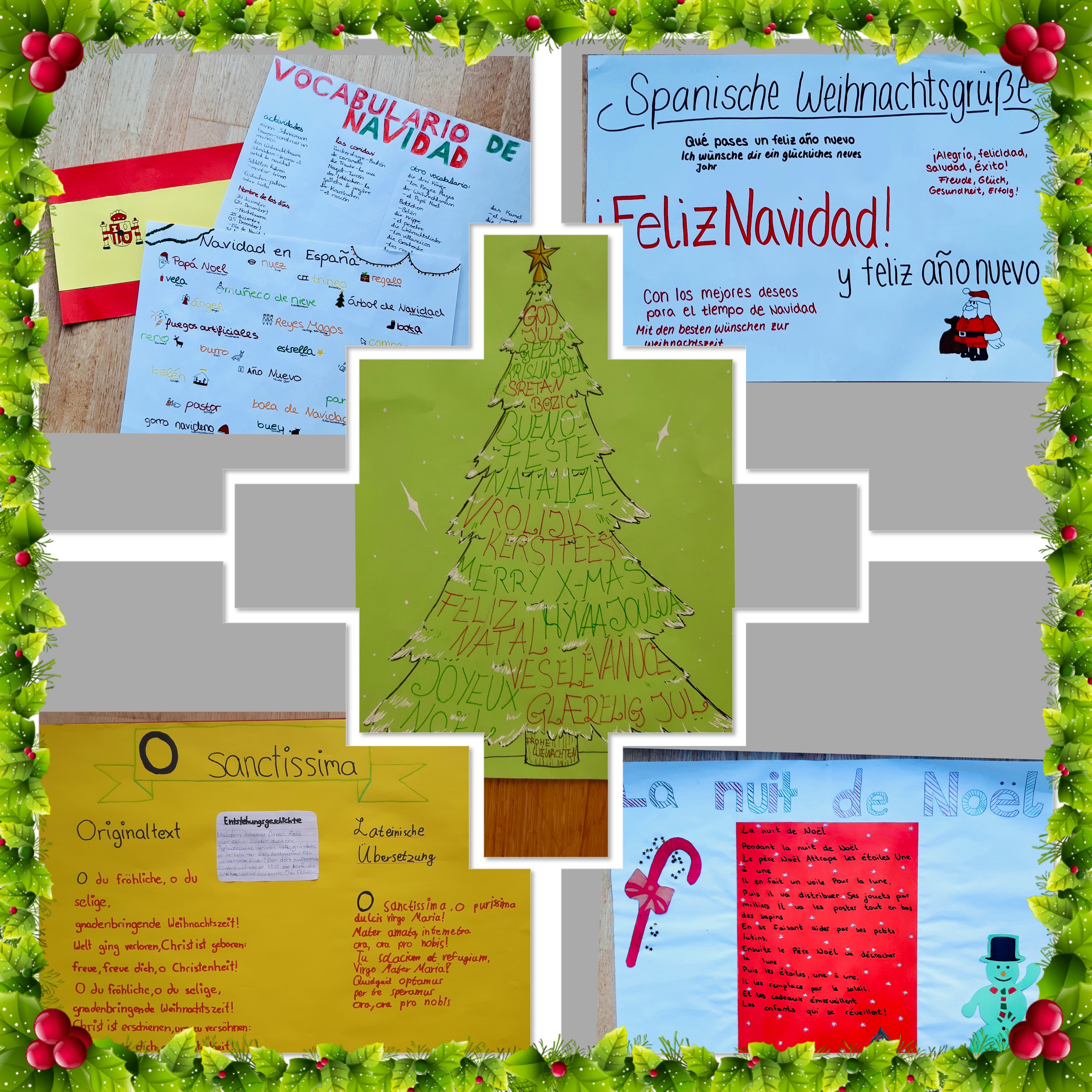 Daraus entstand eine Ausstellung mit Plakaten und Texten zu Weihnachten in Spanien, Frankreich oder Serbien, mit lateinischen Weihnachtsliedern und ihrer Entstehungsgeschichte oder auch Weihnachtsvokabular in unterschiedlichen Sprachen und einer ganz besonderen deutsch-französischen Weihnacht im Kriegsjahr 1914. Zudem haben viele Schülerinnen und Schüler „Frohe Weihnachten“ in den unterschiedlichen europäischen Sprachen geschrieben und gestaltet.