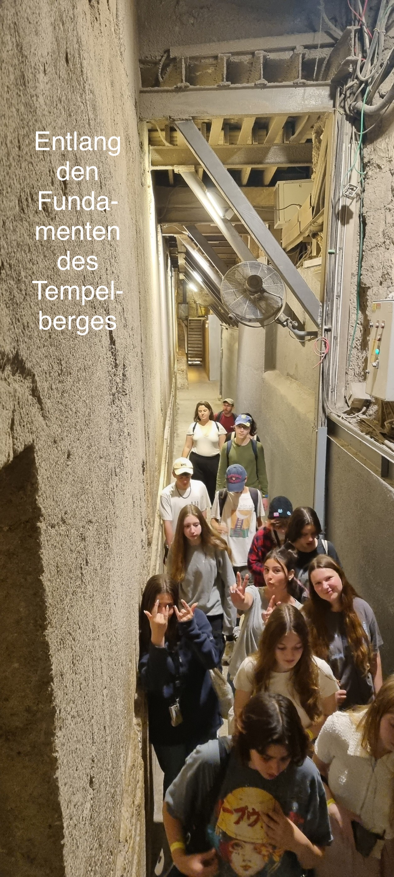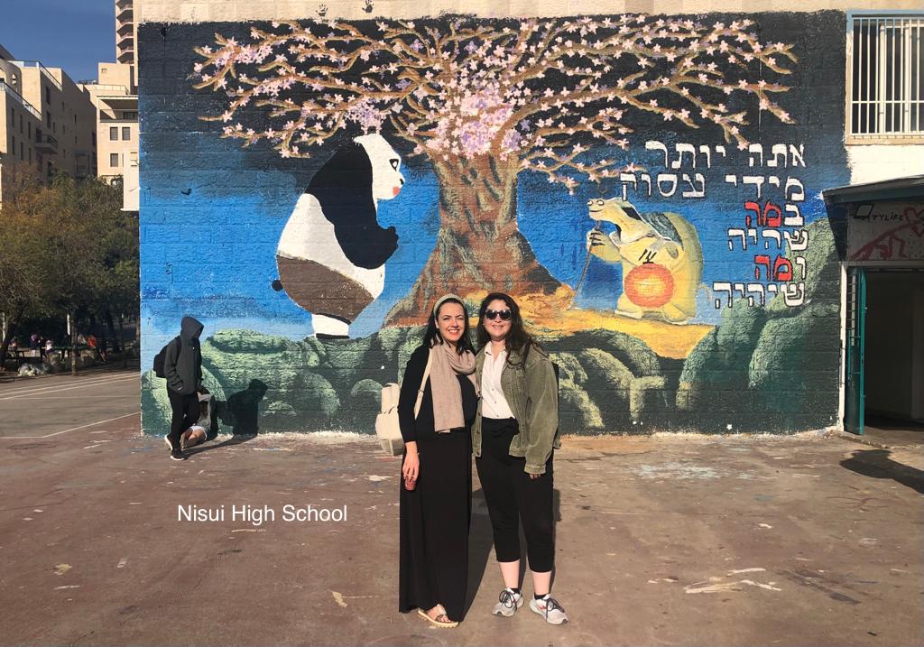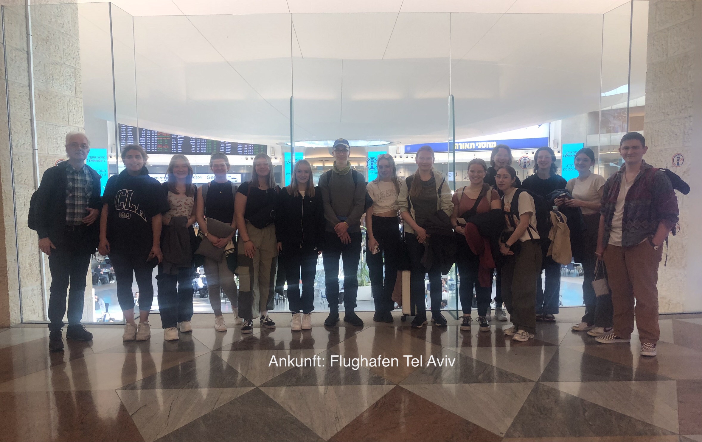 Unser Gegenbesuch in Jerusalem, geplant für den 28.2. bis 7.3.2023, erhielt erst drei Tage vor dem Abflug grünes Licht: Die Sicherheitsbehörden in Israel hatten nun keine Bedenken mehr und es konnte losgehen. Um 3 Uhr nachts stiegen Ende Februar 12 Schülerinnen und 2 Schüler in Begleitung ihrer beiden Lehrkräften am Gymnasium Waldstraße in den Bus zum Flughafen Brüssel. Nach 4 Stunden Flug nahmen die israelischen Schüler:innen als Empfangskommitee ihre Hattinger Gäste in die Arme. Mit der Bahn ging es im Anschluss nach Jerusalem zu den Gastfamilien.