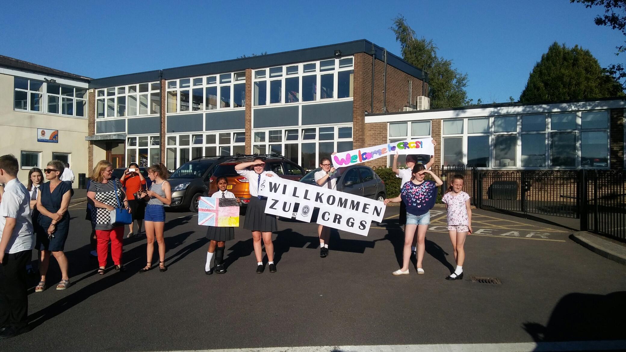 [Herzlicher Empfang an der englischen Partnerschule in Clitheroe zum Beginn des diesjährigen Musikaustausches]