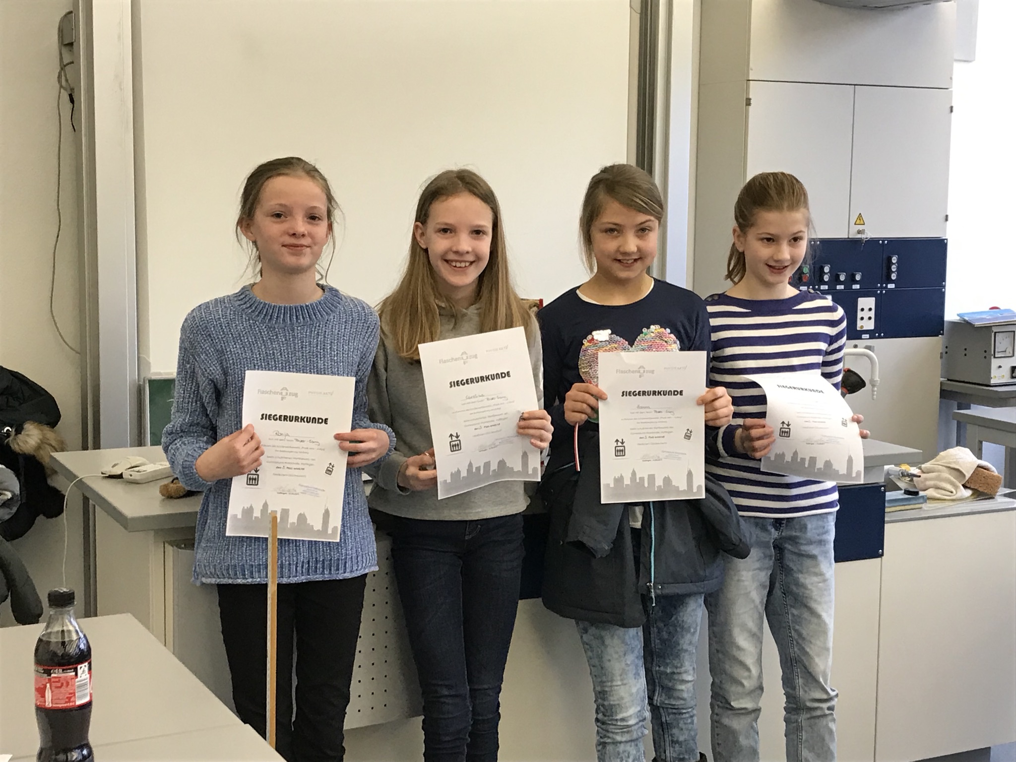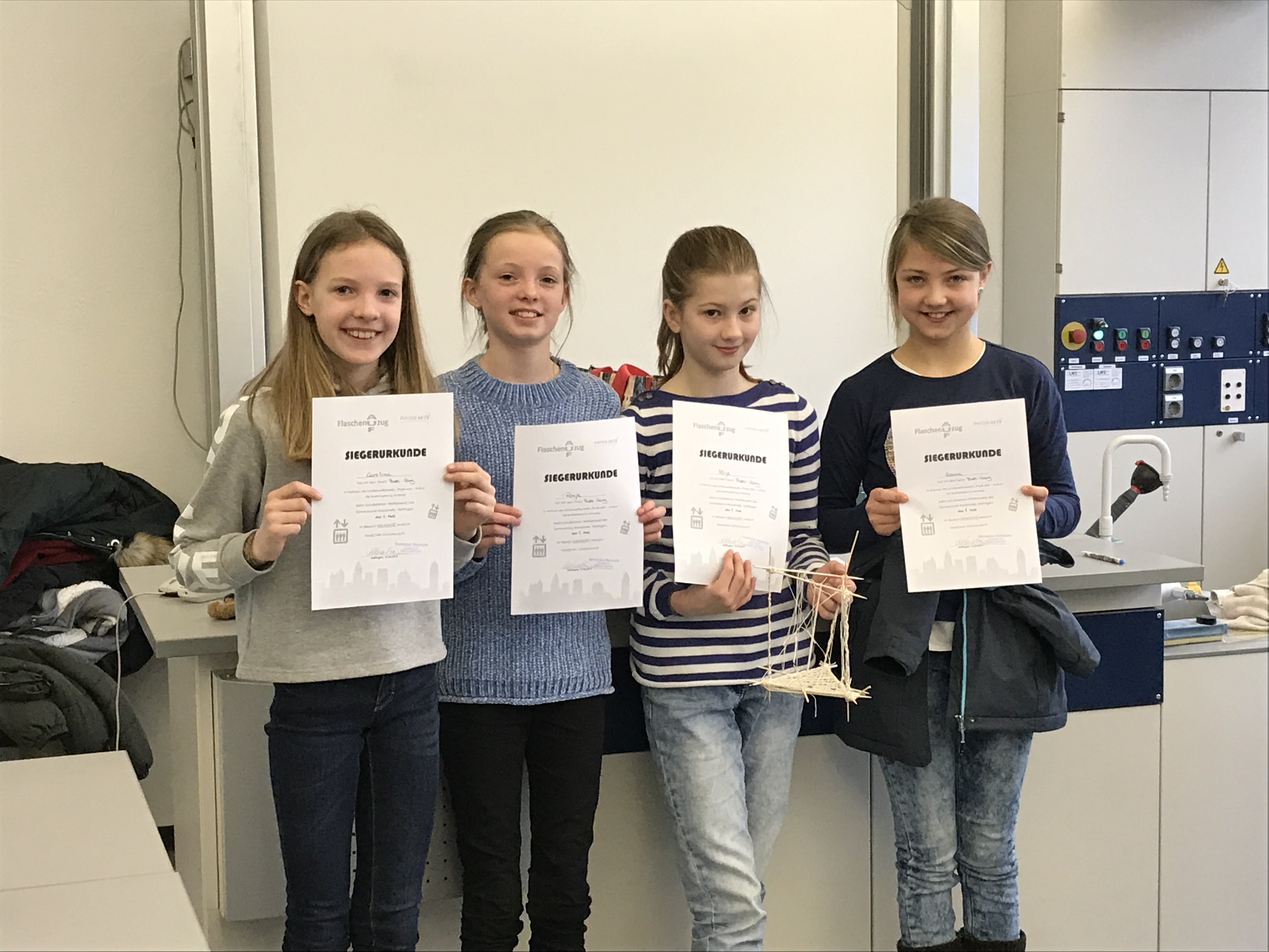 Preis Klasse 5a "Die Power-Gang" mit Mirja, Ronja, Carolina und Hanna bei einem Gewicht von 0,18 N.