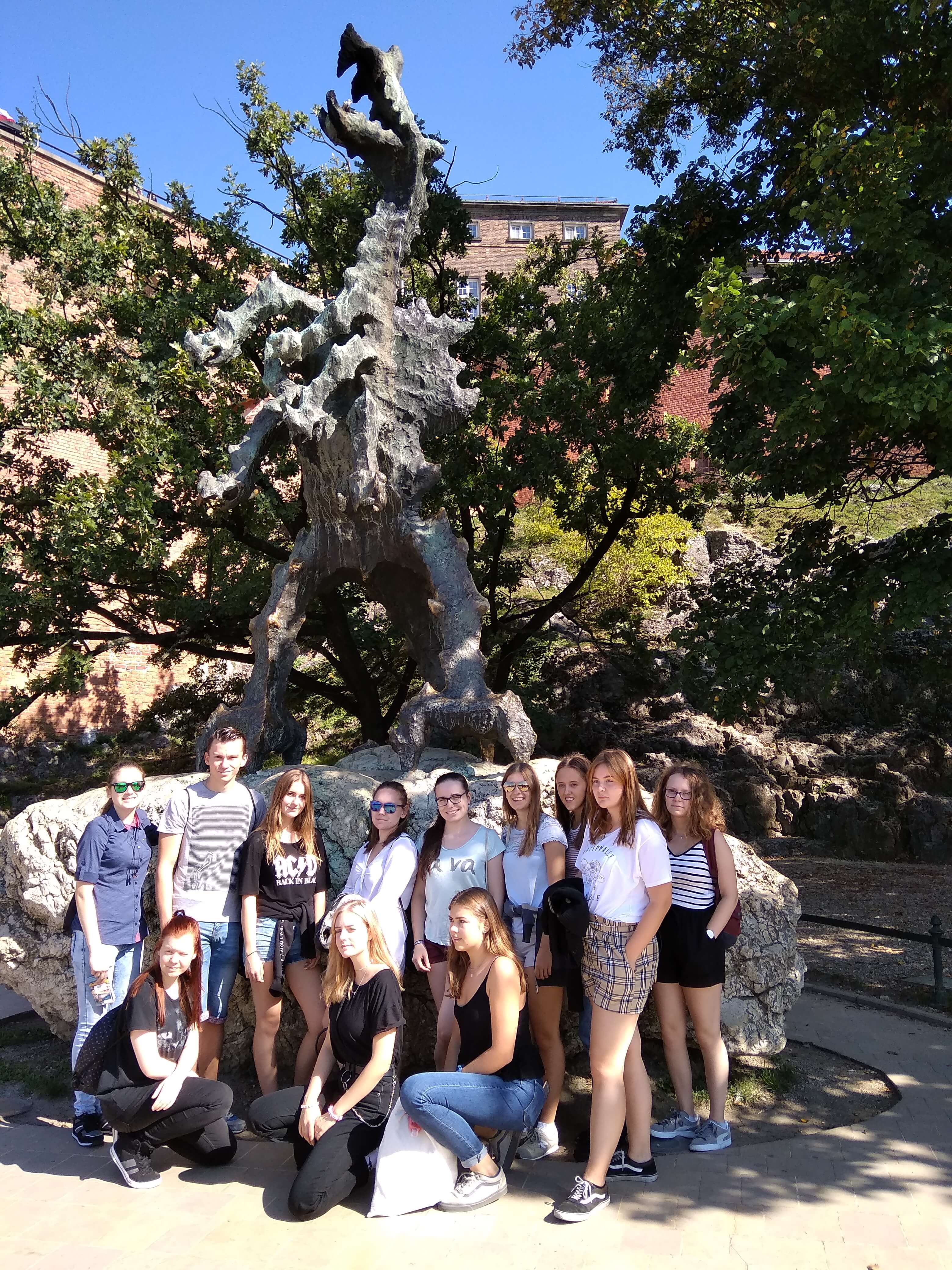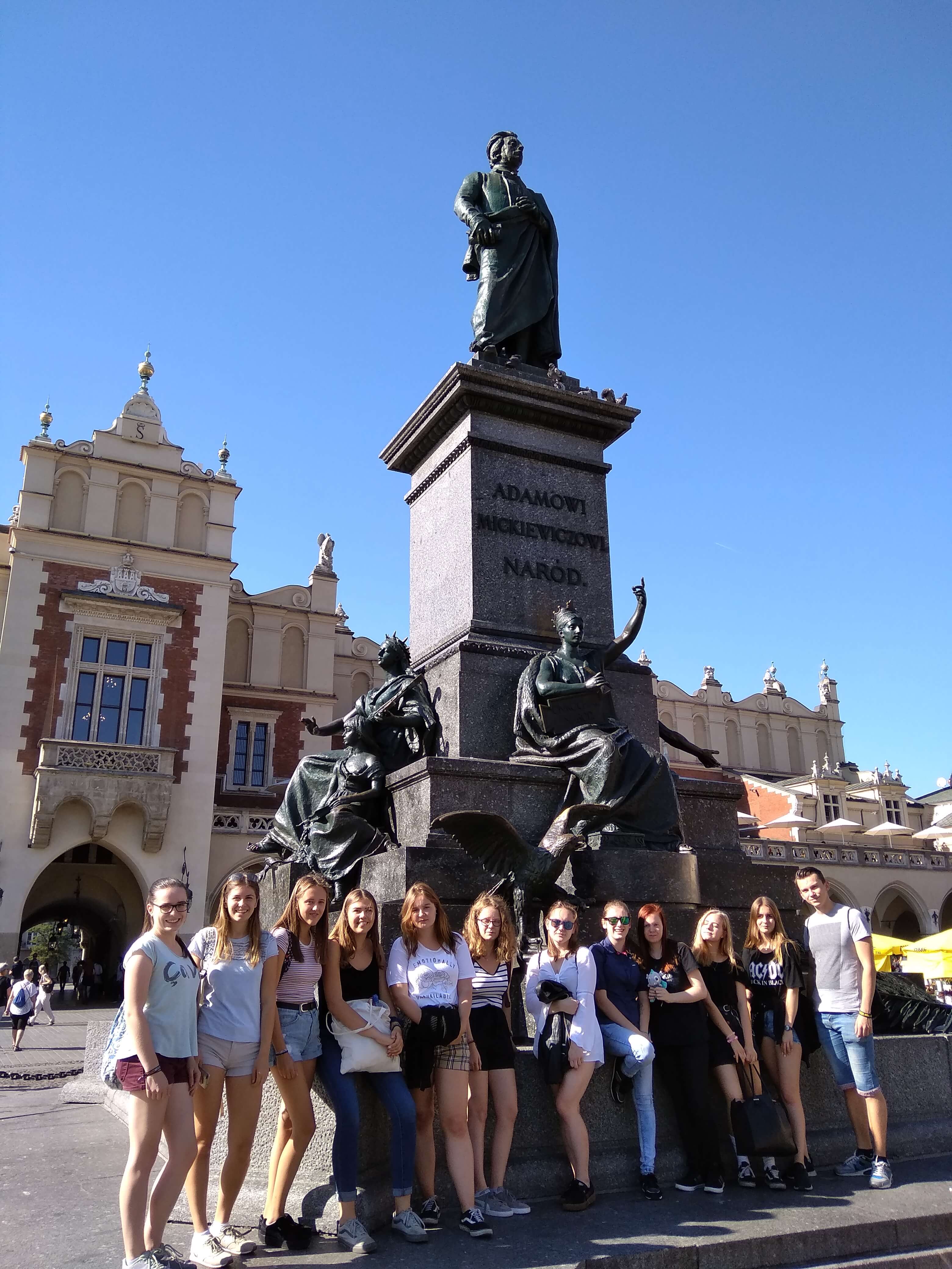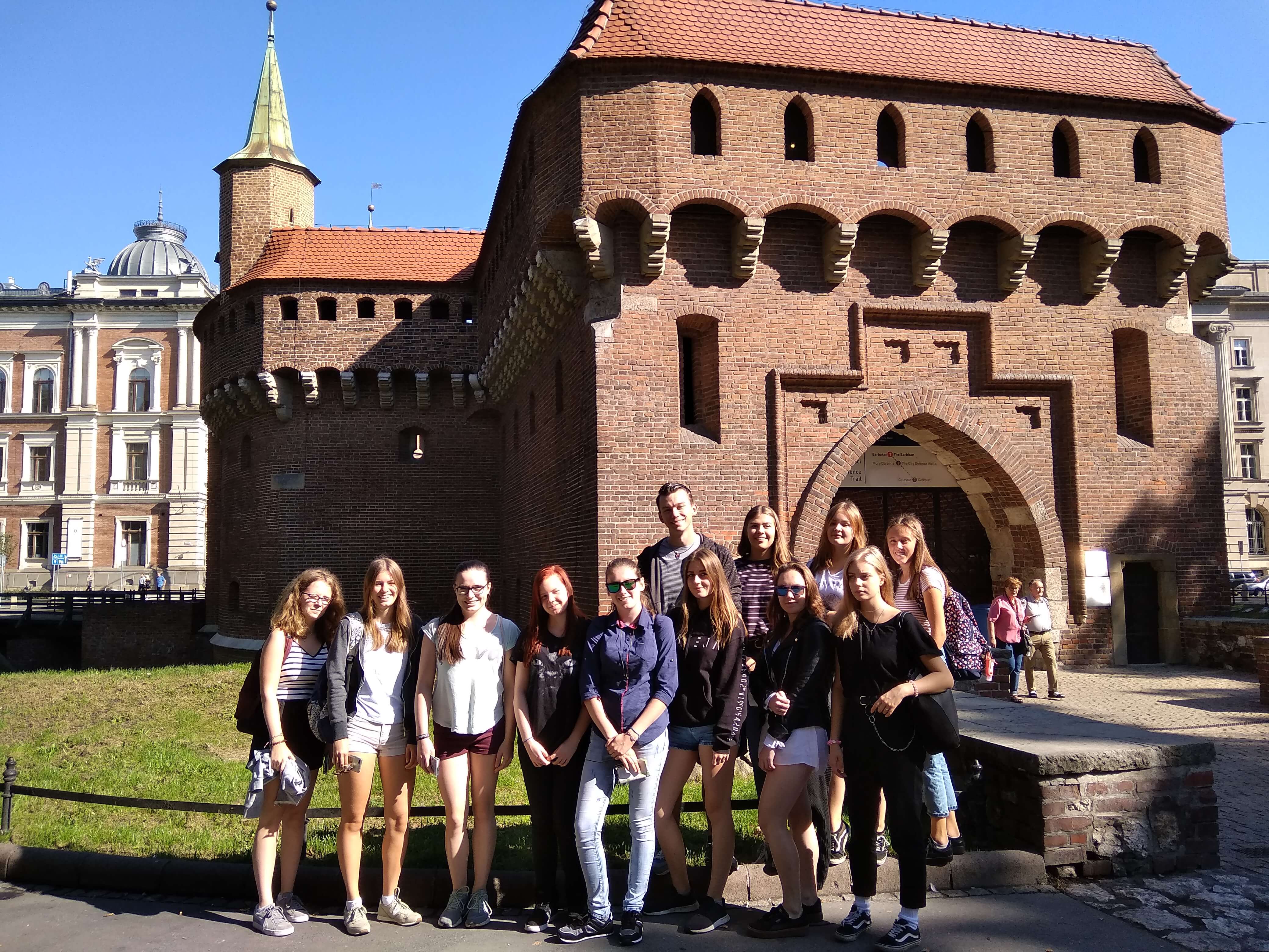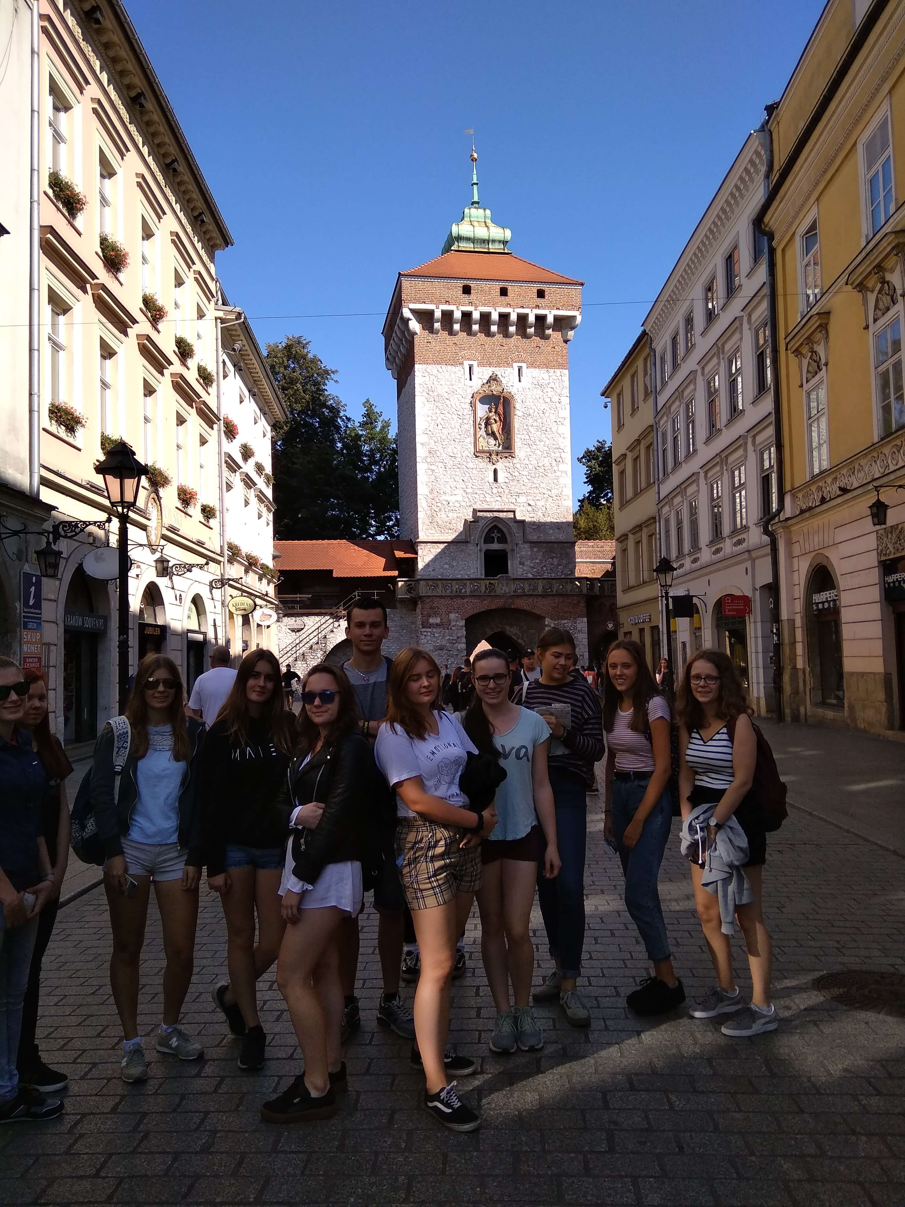 An unserem zweiten Tag in Polen, Mittwoch, der 19.09.2018, stand für unsere Gruppe ein Tagesausflug nach Krakau auf dem Programm. Wir haben uns um 9 Uhr morgens in Katowice am Busbahnhof getroffen, von wo aus wir mit einem Reisebus 2 Stunden bis in die Stadt gefahren sind. In Krakau angekommen begann unsere Tour mit einer Führung, geleitet von der polnischen Lehrerin Frau Wrobel durch die Altstadt. Das Highlight der Tour stellte die Wawel-Burg dar, welche sich direkt neben dem durch die Stadt fließenden Fluss Wisła befindet. Auf dem Rückweg sahen wir viele alte und schöne Gebäude sowie das Florianstor mit zahlreichen Gemälden. Am Ende unserer privaten Führung haben wir uns den Hauptmarkt Krakaus mit den bekannten Stoffhallen und der Marienbasilika angeschaut. Dort hatten wir Freizeit, die wir sowohl zum Essen als auch zum Einkaufen nutzen konnten. Bevor wir wieder in den Bus gestiegen sind, um zurück nach Katowice zu kommen, waren wir in der Galeria Krakowska shoppen.