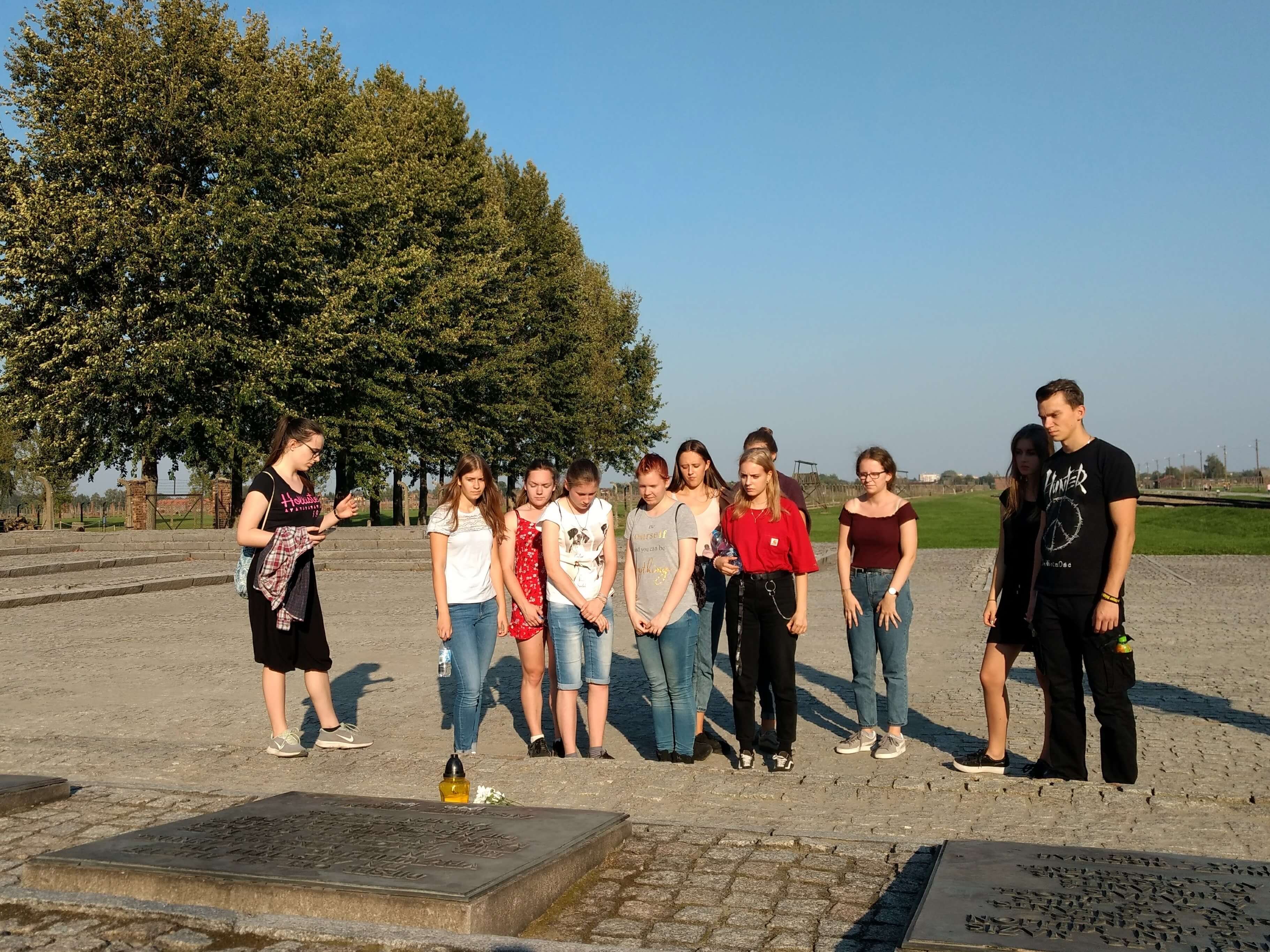 Die polnischen und deutschen Schülerinnen und Schüler haben gemeinsam am „Internationalen Tag des Friedens“ Blumen zur Erinnerung an die Ermordeten niedergelegt