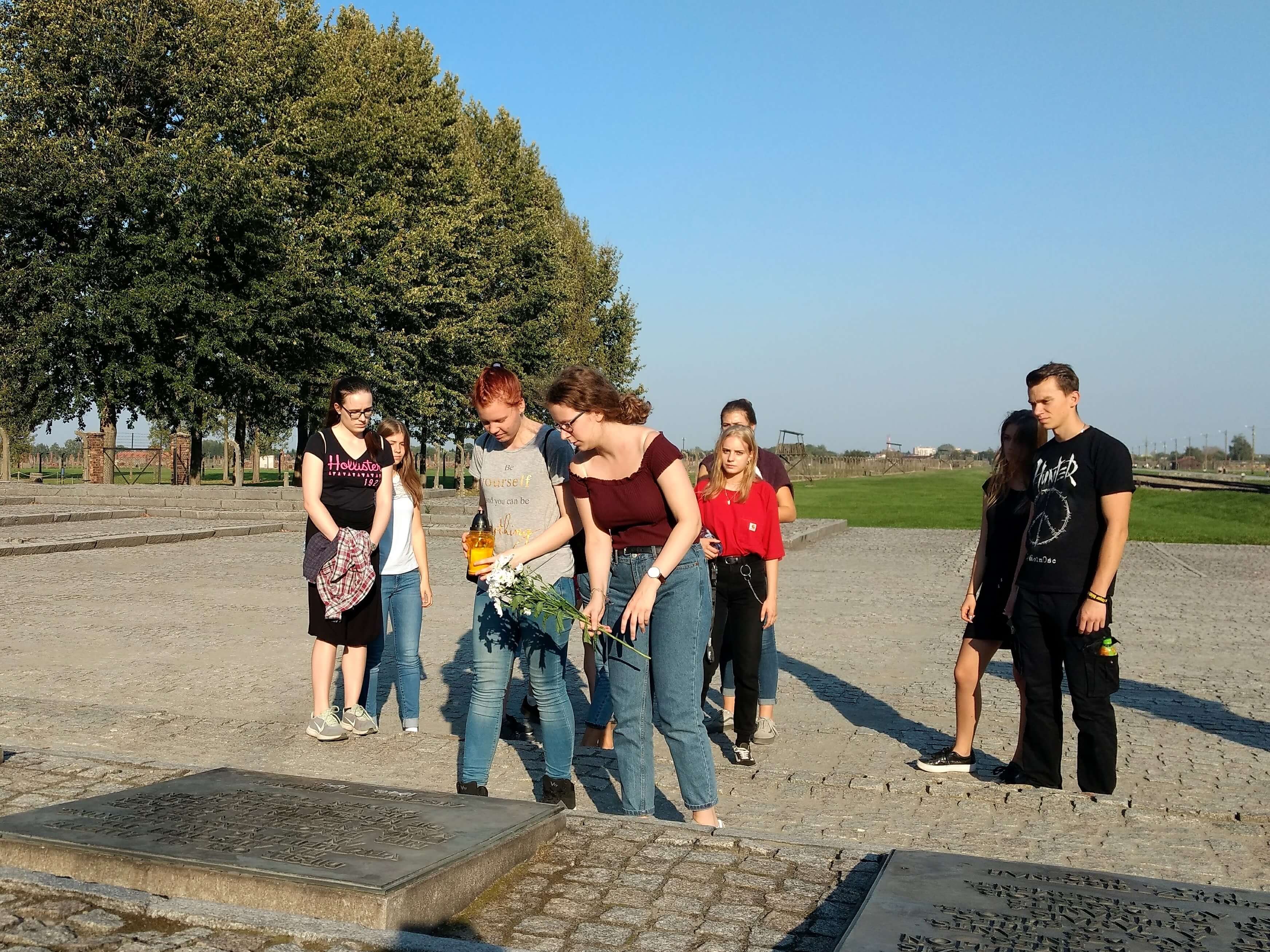 Blumenniederlegung in Auschwitz Birkenau