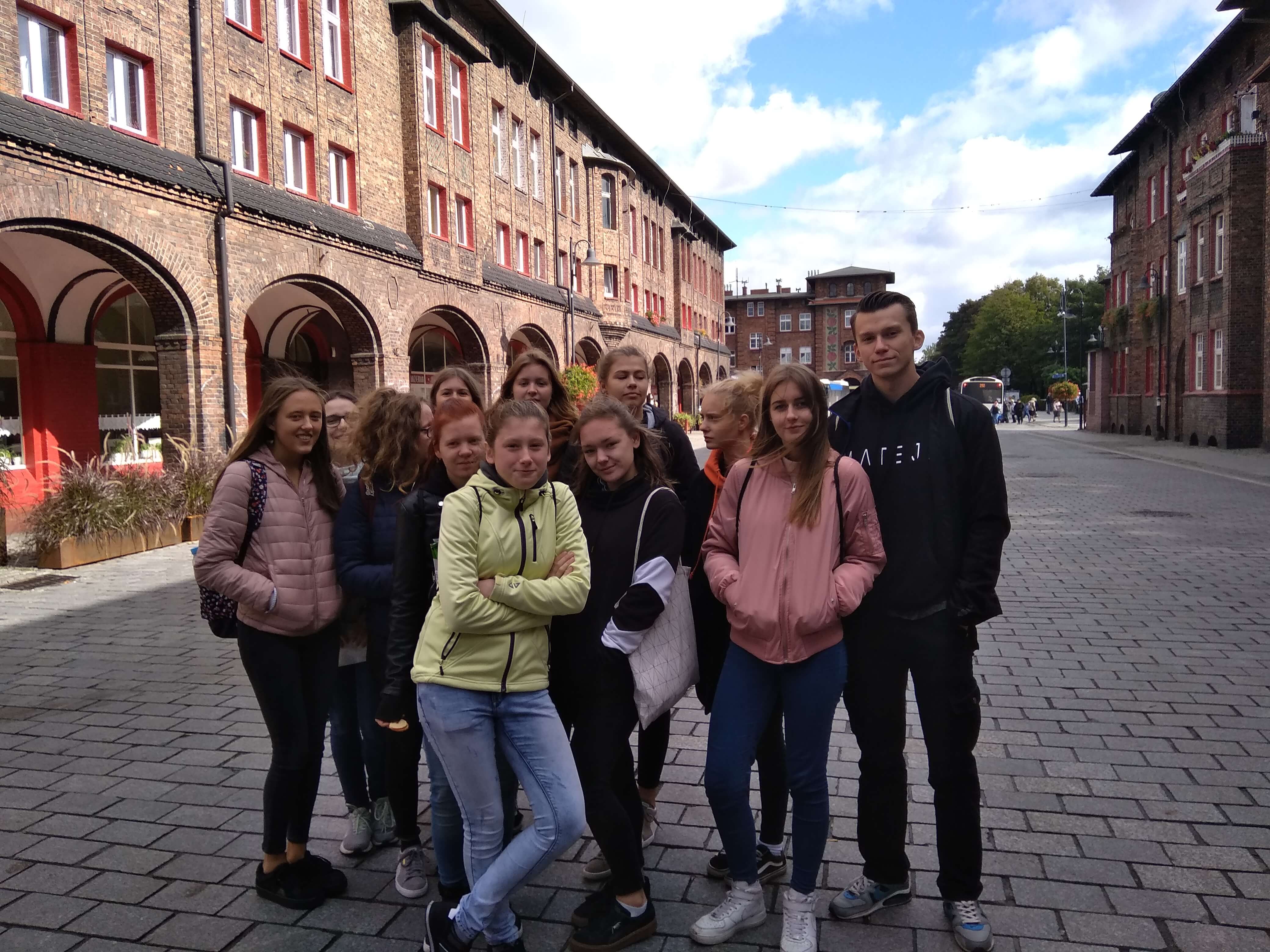 Am Dienstag, den 24.09.2018, stand für mich und meinen Austauschpartner eine Stunde Chemieunterricht auf dem Plan. Am Anfang der Stunde – um 08:30 Uhr – wurde eine kurze Überprüfung der letzten Stunde geschrieben und danach bestand der Unterricht daraus, dass die Lehrerin verschiedene Rechnungen an der Tafel und YouTube-Videos mit Versuchen zeigte. Da ich aber leider kaum Polnisch spreche, war „Valenzelektronen“ das einzige Wort, das ich verstanden habe. Etwa eine Zeitstunde später war der Schultag für uns beendet, da wir an diesem Tag die historische Arbeitersiedlung Nikiszowiec, auf Deutsch Nickischschacht, besichtigen würden, die 45 Minuten mit dem Bus von Siemianowice im Osten der Stadt Kattowitz liegt. Diese Siedlung wurde für Bergleute der Gieschegrube von 1908 bis 1915 und von 1920 bis 1924 nach Plänen der Berliner Architekten Emil und Georg Zillmann gebaut und besteht aus neun Ziegelblöcken und einer Kirche. Nach einem kurzen Stadtrundgang gingen wir in das einzige geöffnete Café, um uns aufzuwärmen und ein zweites Frühstück – Kuchen, regionaltypische Zimtbrötchen, Kaffee oder Tee – zu uns zu nehmen. Danach fuhren wir wieder zurück nach Siemianowice und hatten noch einmal Zeit mit unseren Gastfamilien, was für mich Mittagessen und UNO spielen bedeutete, bevor wir um 16 Uhr wieder in der Schule sein sollten, um den Abschiedsabend mit den Eltern und Geschwistern unserer Austauschpartner vorzubereiten. Für das gemeinsame Essen sollten wir Kartoffeln, Möhren, saure Gurken und Äpfel in maximal zentimetergroße Würfel schneiden und mit Erbsen und Mayonnaise vermischen, was einen Kartoffelsalat polnischer Art ergibt; dazu wurden Würstchen gegrillt. Um 18 Uhr kamen die Gastfamilien und wir aßen gemeinsam in einem Aufenthaltsraum der Schule an einem langen Tisch. Die Verständigung während des Essens lief abwechselnd auf Polnisch, Deutsch und Englisch, aber selbst wenn man etwas nicht verstanden hatte, konnten die Austauschpartner dies meist übersetzen. Zum Abschluss wurde ein Film mit Material von dem Austausch bei uns im Juni gezeigt, der einem noch einmal alles, was wir in Deutschland schon zusammen gesehen und erlebt hatten, in Erinnerung gerufen hat. Schließlich mussten wir uns von den anderen Gastfamilien verabschieden und zuhause unsere Sachen packen, da am nächsten Tag die anstrengende Rückreise bevorstand.