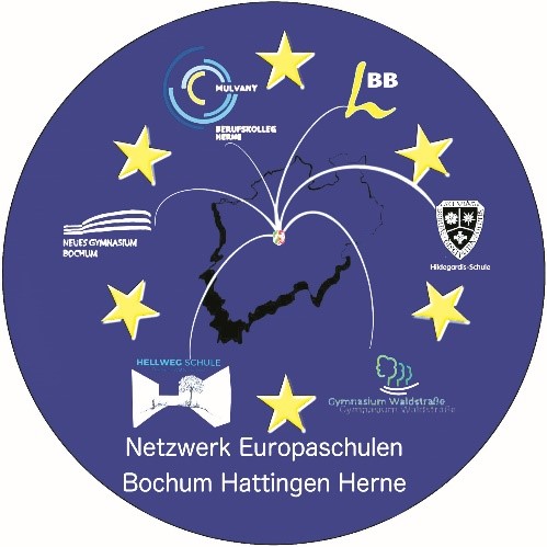Zum einen gab es einen Design-Wettbewerb, um dem „Netzwerk-Europaschulen Bochum-Hattingen-Herne“ ein neues Logo zu geben. Das Sieger-Logo, das von einem Schüler-Team des Mulvany Berufskollegs aus Herne erstellt wurde und nun unser Netzwerk repräsentiert, wurde bereits im Vorfeld gekürt, so dass die Veranstaltung mit der Ehrung der Preisträger begann.