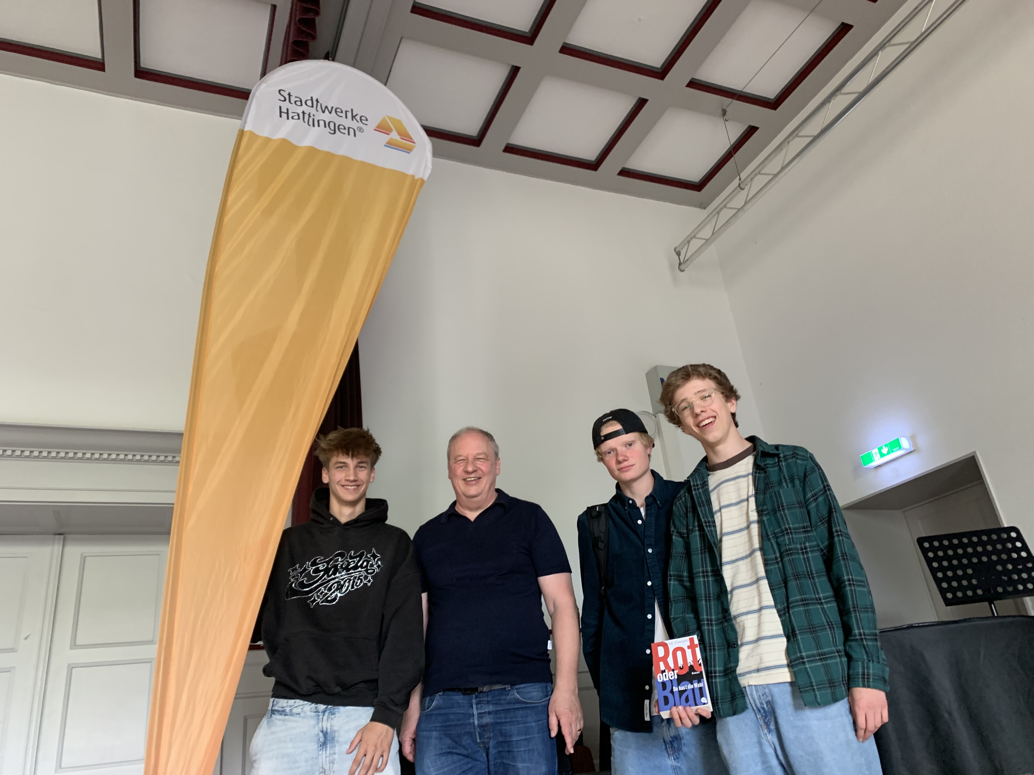 Im Rahmen des 3- jährigen Sponsorenvertrags mit den Stadtwerken Hattingen, der in Zusammenarbeit mit dem Förderverein und Bücherclub unserer Schule entstanden ist und der Schule pro Schuljahr eine Lesung finanziert, hatte Herr Theisen seinen Jugendroman „Rot oder blau. Du hast die Wahl“ mitgebracht. Ganz in der Tradition von der „Welle“ von Morton Rhue handelt er von der Durchführung eines Schulexperiments eines 9. Jahrgangs, in dem nach Vorbild der Präsidentschaftswahlen in Amerika ein Schulpräsident gewählt werden soll (s. Teaser u.).