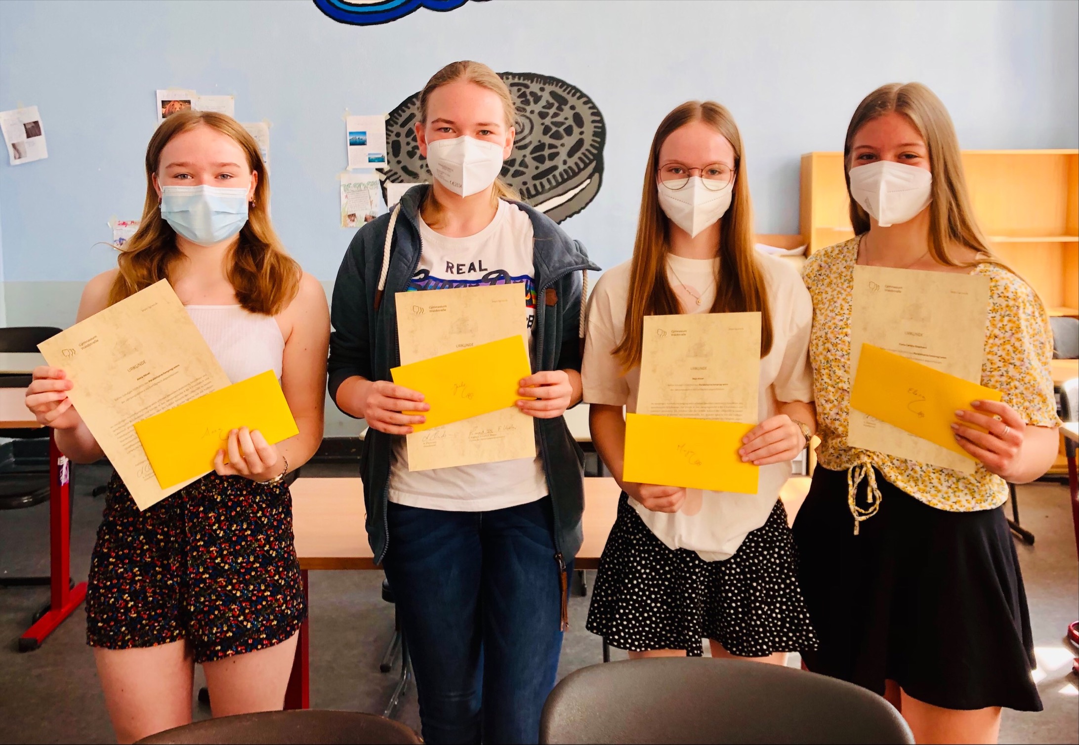 Vier Schülerinnen der Jahrgangsstufe 9 gehören seit vier Jahren zum Parallelsprachenprogramm und werden es zum Schuljahresende erfolgreich abschließen. Wir gratulieren ganz herzlich zu dieser tollen Leistung Jule Kiewel (9a), Elena Carlota Siepmann sowie Maja und Anna Hövel (alle 9c).