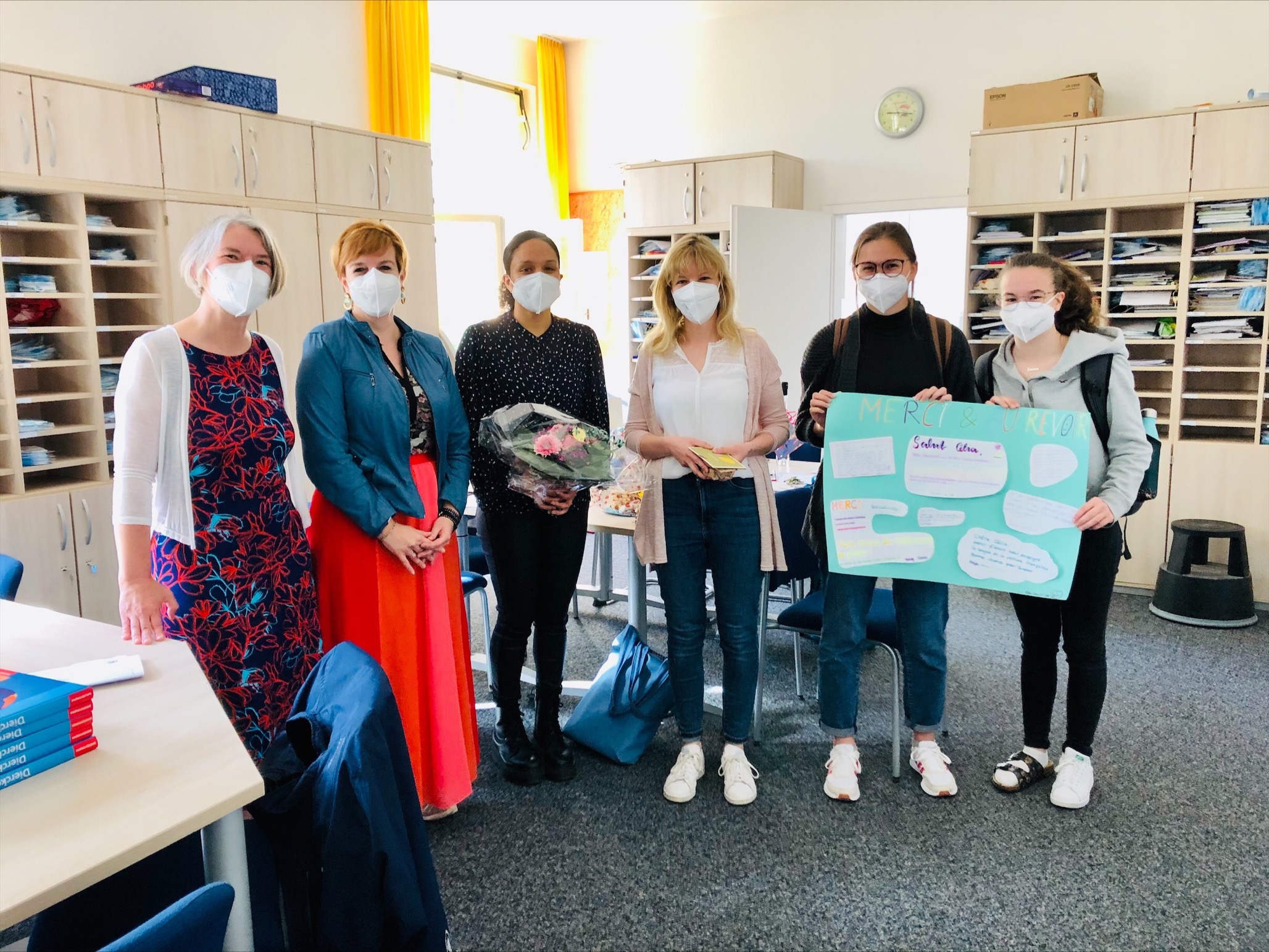 Am 31.05.2021 wurde unsere französische Fremdsprachenassistentin Célia Boglo von Frau Christiani und der französischen Fachschaft verabschiedet. Wir sagen "Merci beaucoup" für die tolle Mitarbeit und Unterstützung im Französischunterricht und außerhalb des Unterrichts in den beiden letzten Jahren.