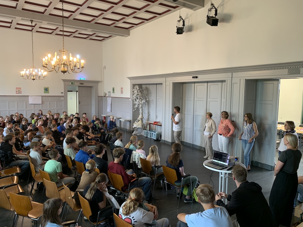 Am Mittwoch, den 04.09.24 war in unserer Aula richtig was los: Der Arbeitskreis für „Bildung für nachhaltige Entwicklung (BNE)“ hat alle SchülerInnen der Waldstraße eingeladen, gemeinsam in einem dreieinhalbstündigen Kick Off-Workshop den Grundstein für das neue Klimaparlament am Gymnasium Waldstraße zu legen. Die unglaubliche Anzahl von 140 SchülerInnen aus allen Jahrgangsstufen ist gekommen!