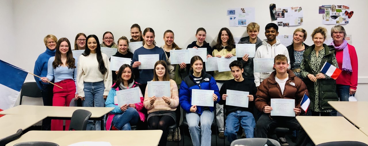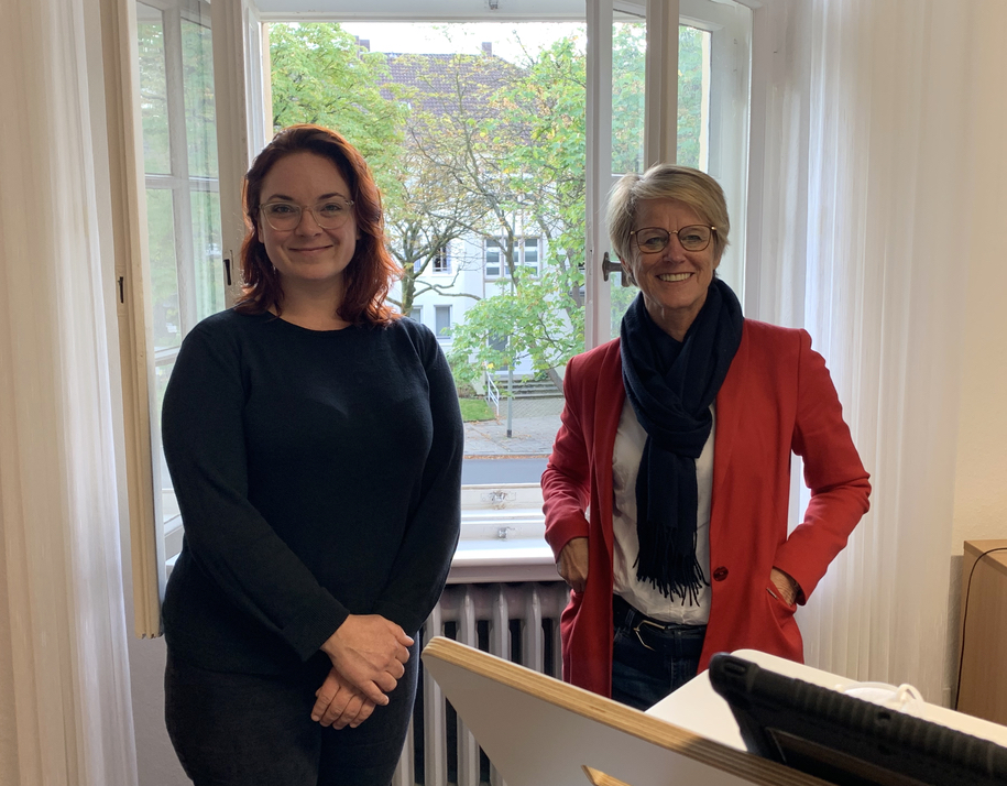 Seit einem Jahr arbeiteten sie am Aufbau der Schulbücherei, die in Zukunft von den SchülerInnen selbst verwaltet werden soll. Dafür wurde der Raum A107 eigens gestrichen und mit Regalen versehen. Die meiste Arbeit bestand bisher darin, die durch Bücherspenden empfangenen Bücher in das digitale Ausleihsystem einzutragen, mit Farbcodes für Unter-, Mittel- und Oberstufe zu markieren und strukturiert einzuräumen. Begleitet wurde dieses Projekt von Fr. Meier und Hr. Jeucken, und auch unsere Praxissemesterstudierenden Fr. Wahle und Fr. Eyle halfen tatkräftig mit.
