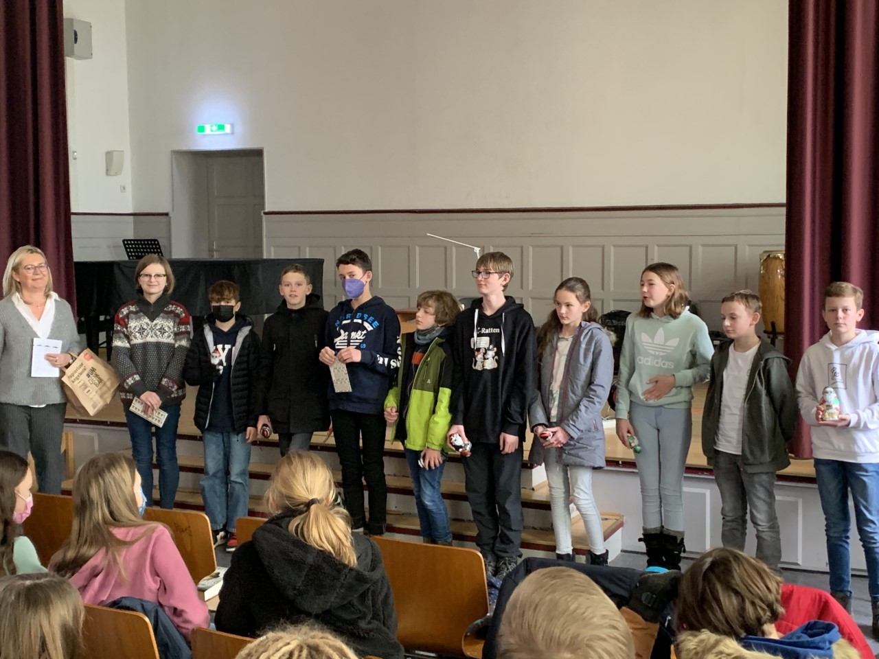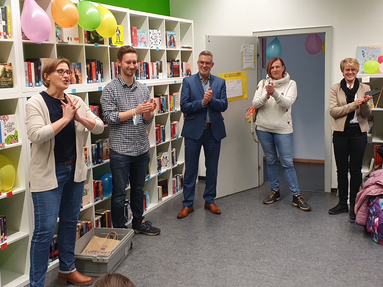 Diese Bücher wurden den Gästen bei der Eröffnung am 17.11.22 freudestrahlend präsentiert. Uns hat es sehr gefreut, dass Fr. Kiewel vom Förderverein, Hr. Schnieders von der Sparkasse Hattingen und Hr. Müller von der Buchhandlung "Lebenswert" in Hattingen zur Eröffnungsfeier gekommen sind. Fr. Christiani eröffnete die Schulbücherei und drückte allen Beteiligten ihren Dank für diese tolle Arbeit aus.