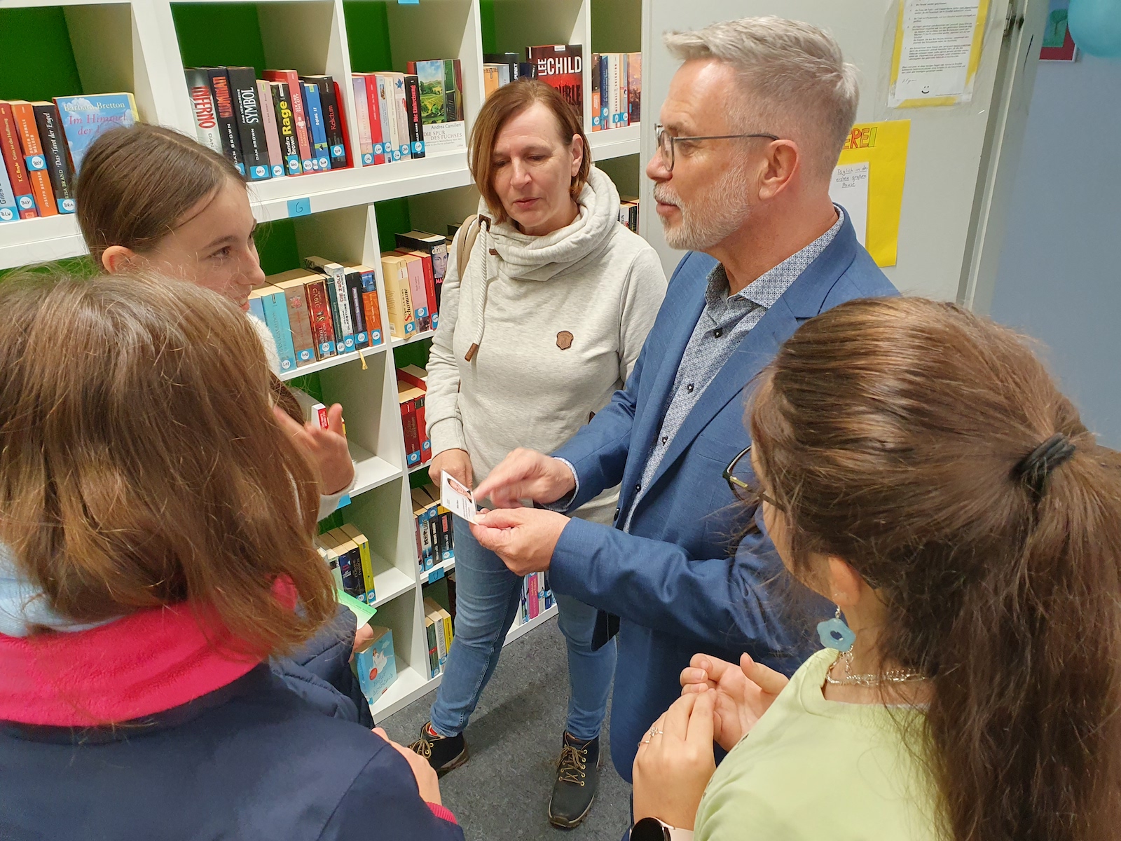 Dank der großzügigen Spenden des Fördervereins der Waldstraße, der Sparkasse Hattingen, der hwg Hattingen und von Herrn Müller von der Buchhandlung "Lebenswert" war es am 09.11.2022 endlich soweit: Die SchülerInnen konnten in der Buchhandlung "Lebenswert" nach Herzenslust Bücher im Wert von ca. 1000 EUR für die Schulbücherei kaufen.