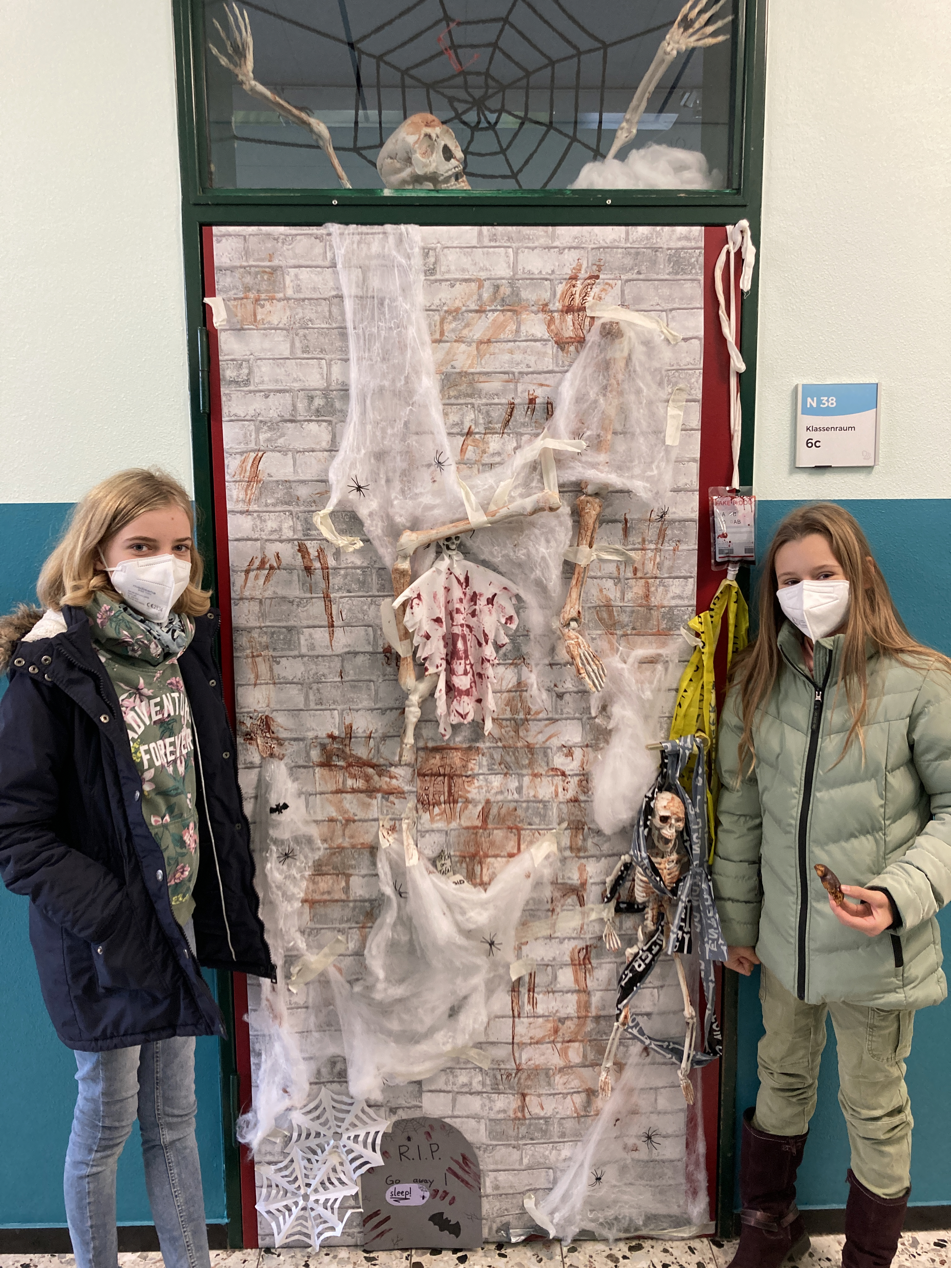 Verantwortlich für dieses unheimliche Treiben war die SV, die einen Preis für die ihrer Meinung nach schönste Tür ausgesetzt hatte. Mitmachen konnten alle Klassen der Unter- und Mittelstufe