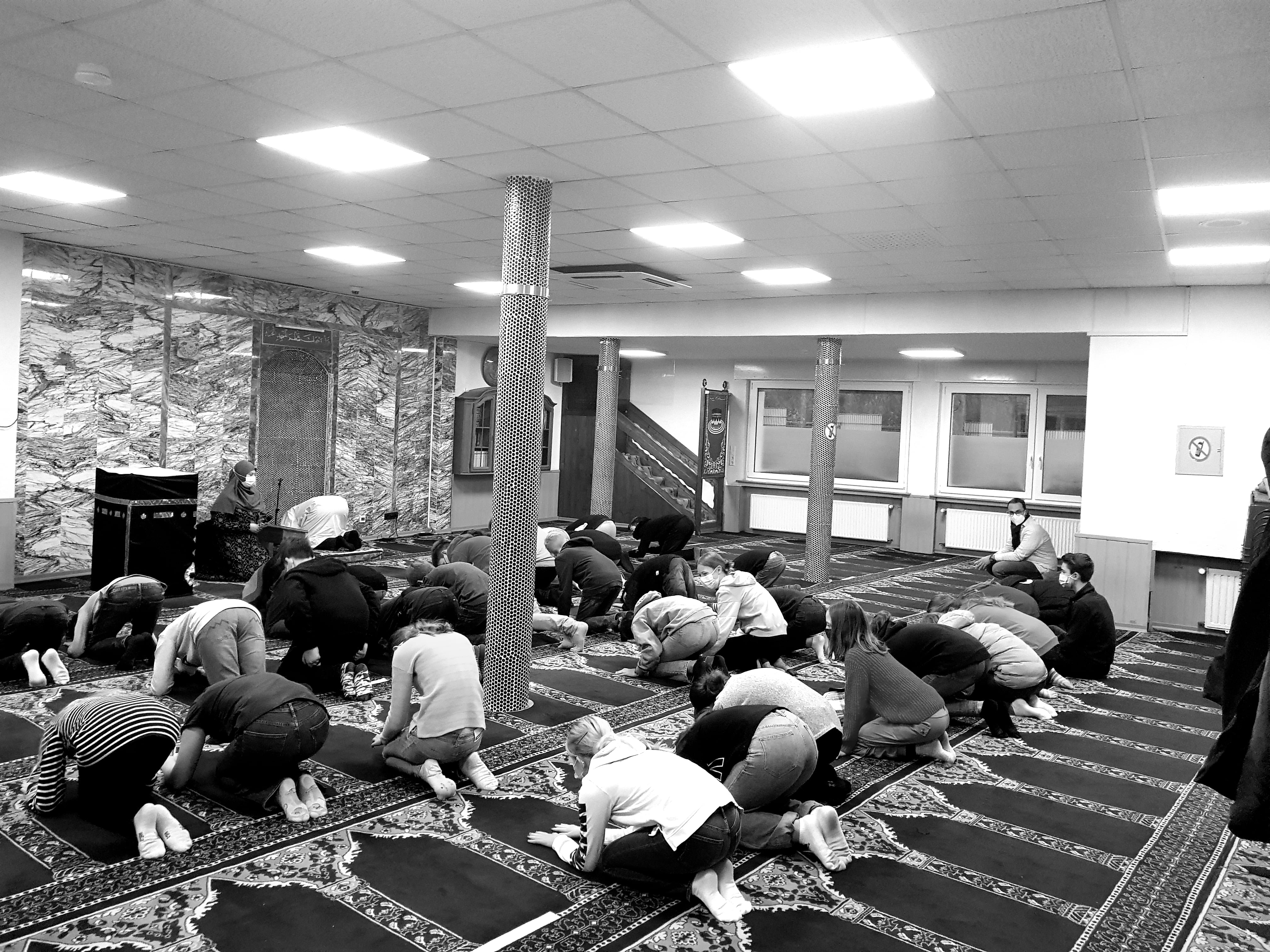 Für eine weitere aufregende Exkursion begaben sich die Ev. Religionskurse der Jahrgangsstufe sieben am 24.11.21 auf eine Reise zur DITIB türkisch-islamischen Gemeinde in Hattingen Mitte. Dort konnten die Schülerinnen und Schüler das Gotteshaus vieler Musliminnen und Muslime aus ihrem Umfeld, ihre Gebetsformen, Kleidung und Regeln des Glaubens erkunden. Die dort gemachten Erfahrungen werden den Schülerinnen und Schülern sicherlich lange in Erinnerung bleiben: die freundliche Art der Gastgeber, das arabische Gebet, die vielen spannenden Gegenstände, deren Symbolik und Bedeutung erläutert wurden, das Ausziehen der Schuhe vor Betreten des Gebetsraumes, der Teppich im Gebetsraum und nicht zuletzt das leckere Lunchpaket, das es am Ende für jeden und jede gab.
