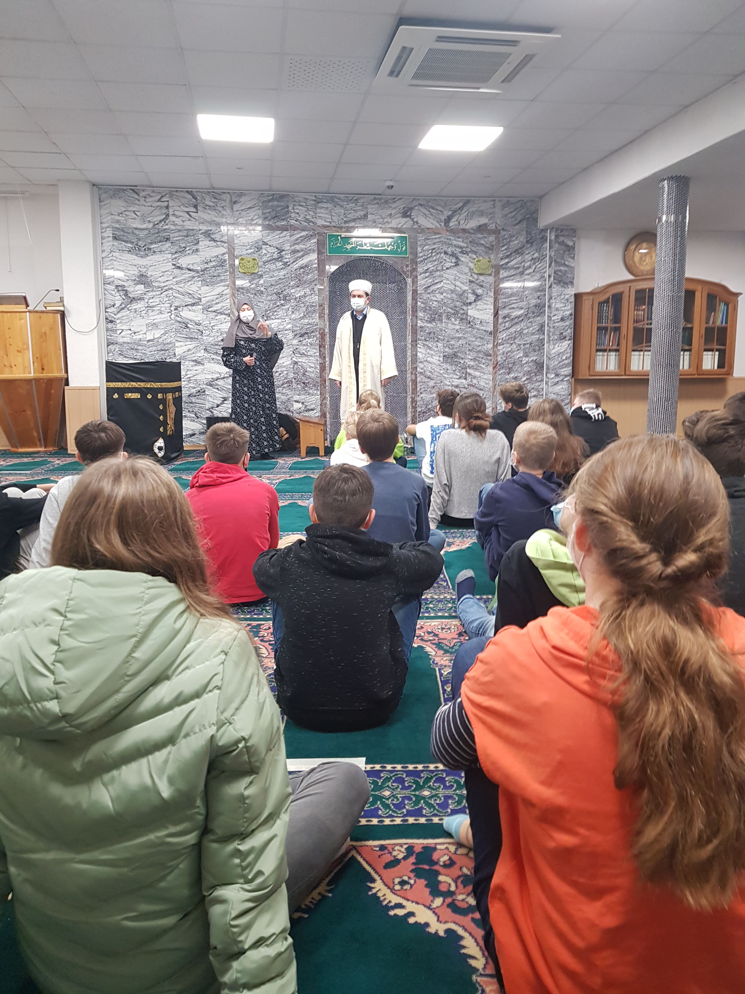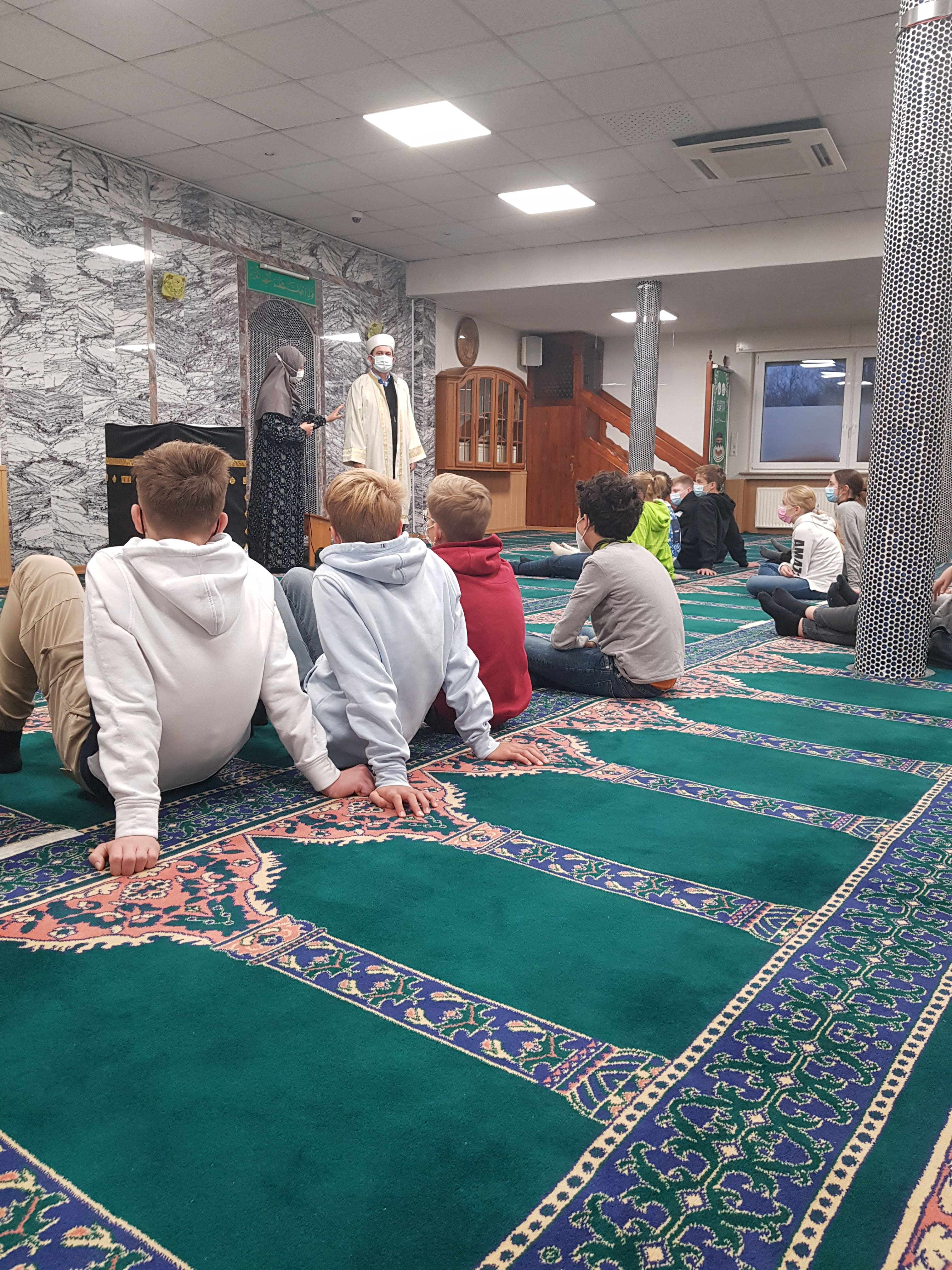 Nach der Erkundung des Gebetsraumes und einem eingängigen Vortrag eines Vorstandsmitglieds durften die Schülerinnen und Schüler viele Fragen stellen, die kompetent und schülernah beantwortet wurden.