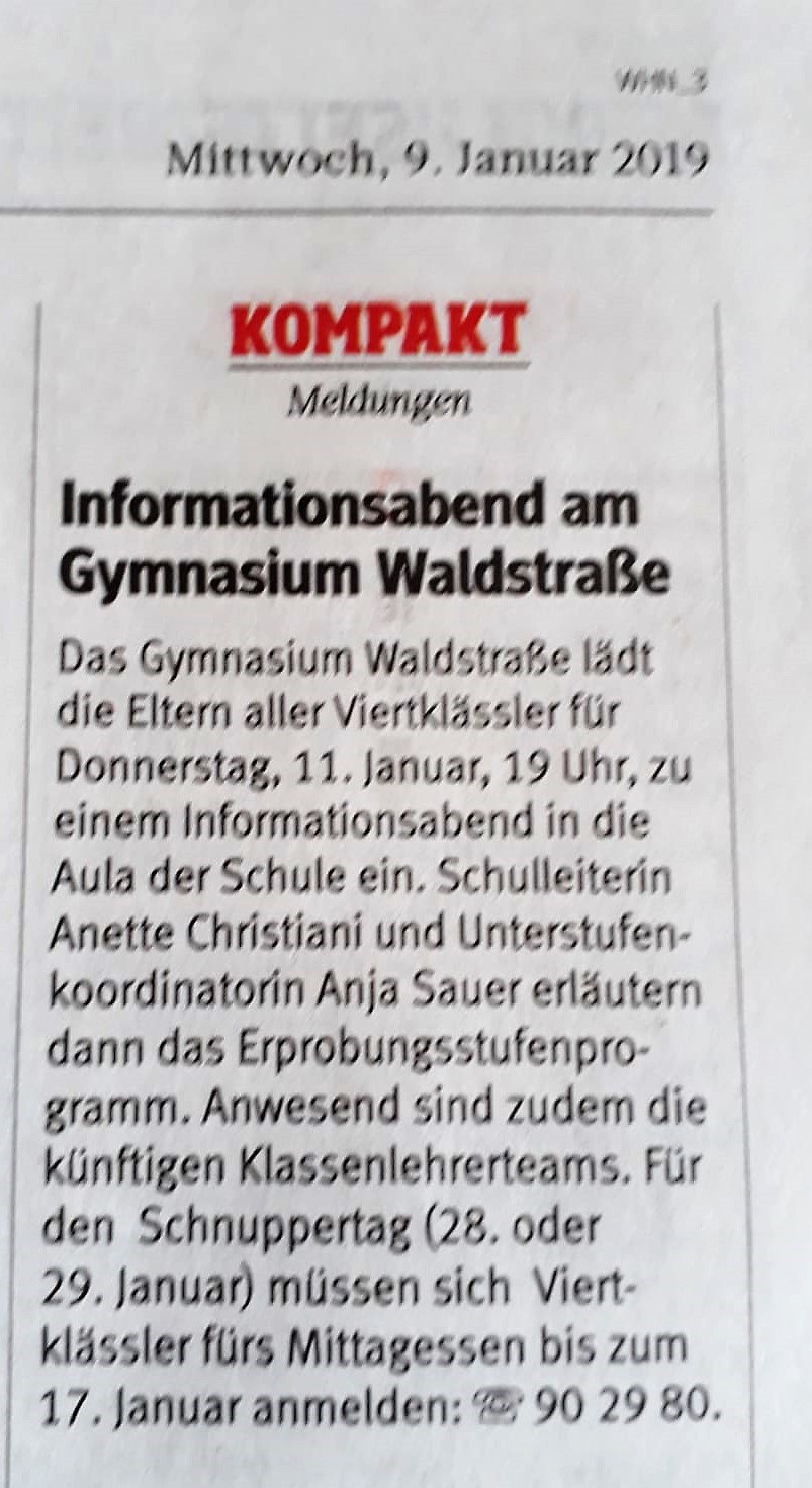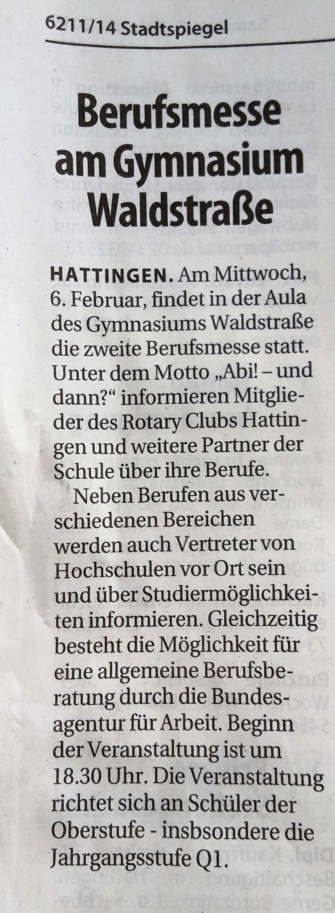 Stadtspiegel: "Berufsmesse am Gymnasium Waldstraße (2. Februar 2019)