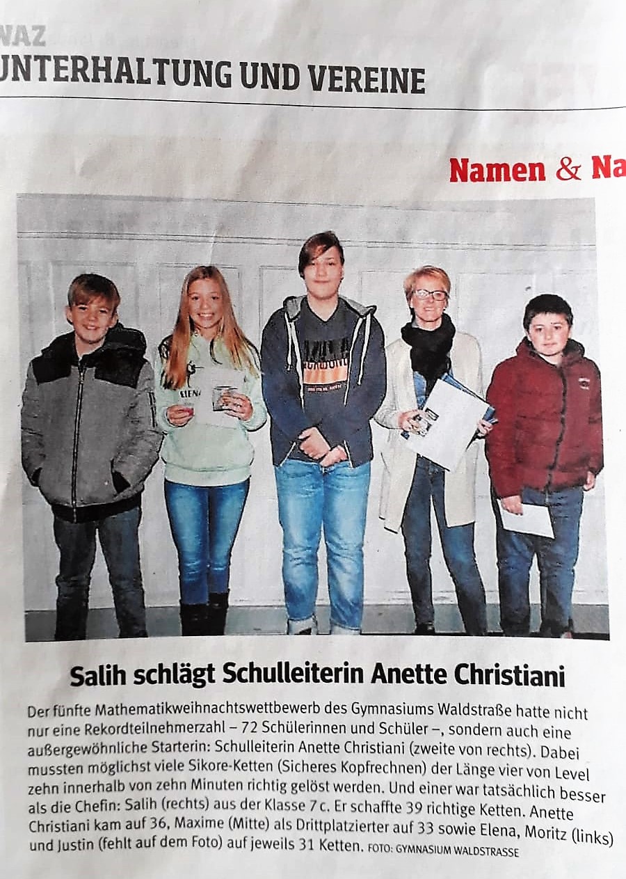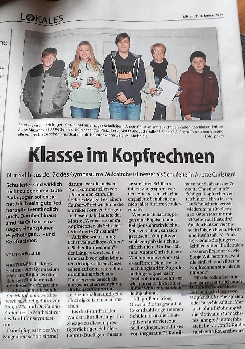Stadtspiegel: "Klasse im Kopfrechnen" (9. Januar 2019)