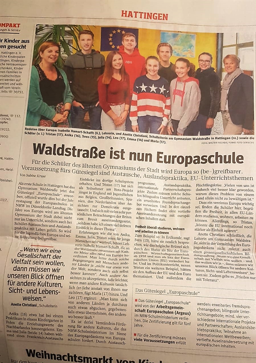 WAZ: "Waldstraße ist nun Europaschule" (27. November 2019)
